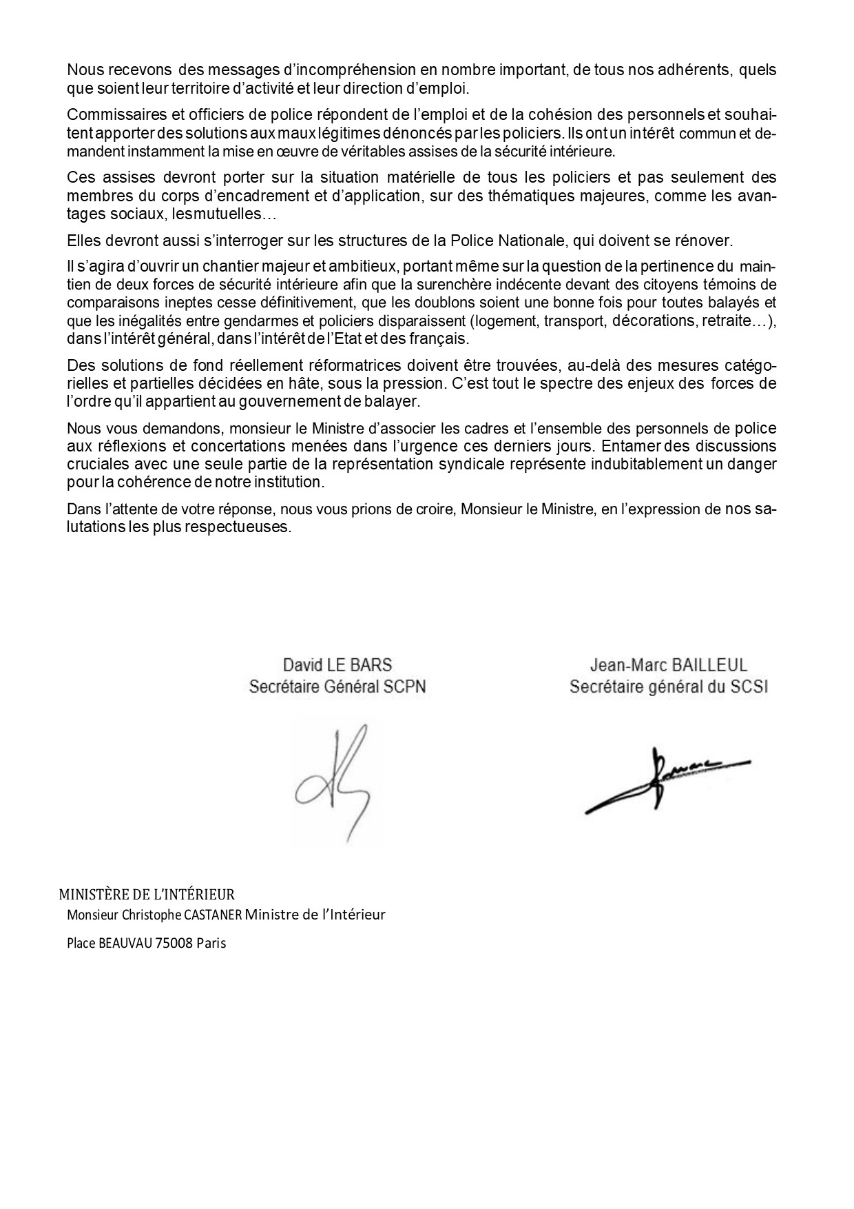 Le SCSI-CFDT et le SCPN saisissent le Ministre de l'Intérieur - SCSI CFDT