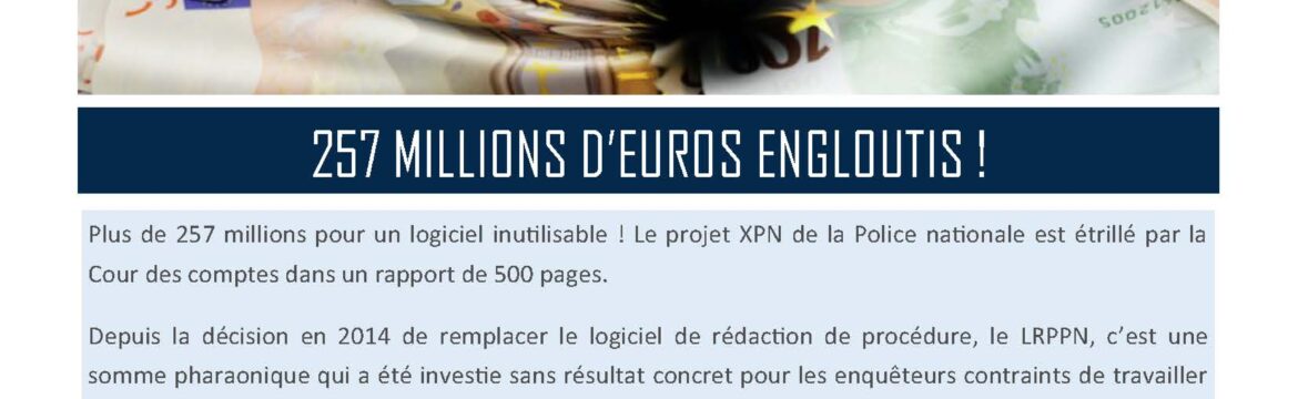 Plus de 257 millions pour un logiciel inutilisable ! Le projet XPN de la Police nationale est étrillé par la Cour des comptes dans un rapport de 500 pages.
